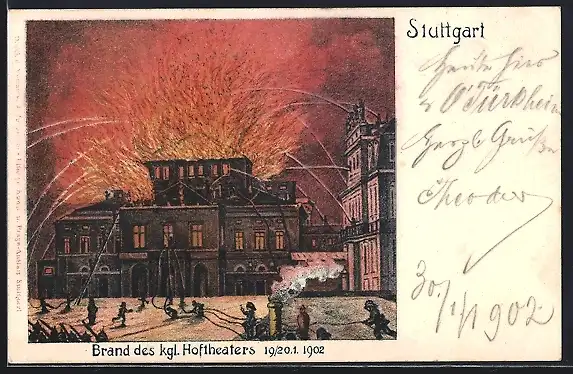 AK Stuttgart, Brand des kgl. Hoftheaters 19. /20.1.1902