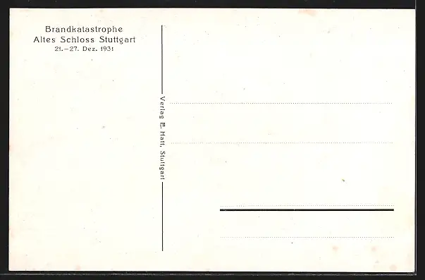 AK Stuttgart, Brandkatastrophe Altes Schloss 1931