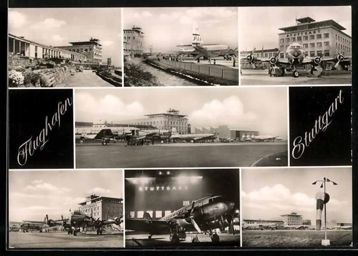 AK Stuttgart, Flughafen, versch. Ortsansichten mit Jumbo-Jets und dem Flughafengebäude