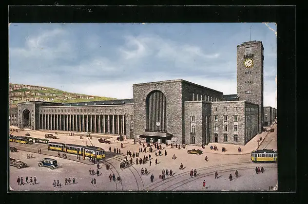 AK Stuttgart, Hauptbahnhof von oben gesehen