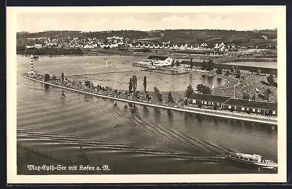 AK Stuttgart-Hofen, Max-Eyth-See, Hafen, Gaststätte mit Strand-Kaffee