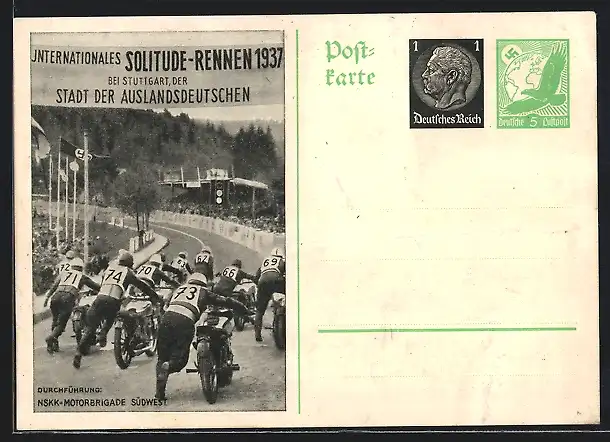 AK Stuttgart, Internationales Solitude-Motorrad-Rennen 1937, NSKK-Motorradbrigade Südwest, Ganzsache
