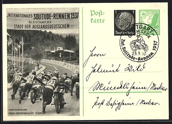 AK Stuttgart, Internationales Solitude-Rennen 1937, Durchführung NSKK-Motorbrigade Südwest, Ganzsache