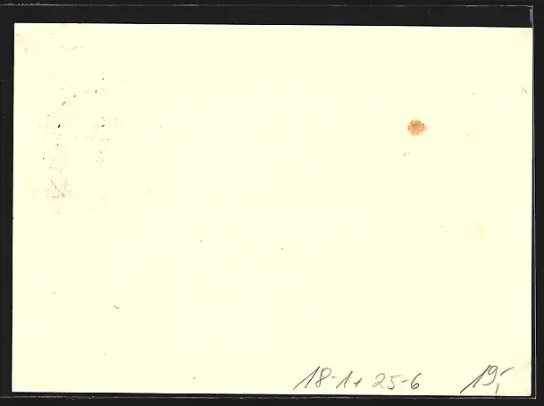 Personenbezogene Daten auf der Rückseite der Karte wurden durch blauen Textmarker unkenntlich gemacht. Die blauen Stellen sind auf die Vorderseite durchgeweicht und wirken sich negativ auf das Postkartenfoto aus