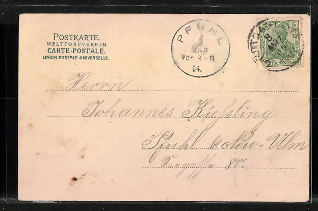 gelaufen 1904, Briefmarke tw. entfernt, guter Zustand