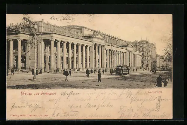 AK Stuttgart, Königsbau mit Strassenbahn