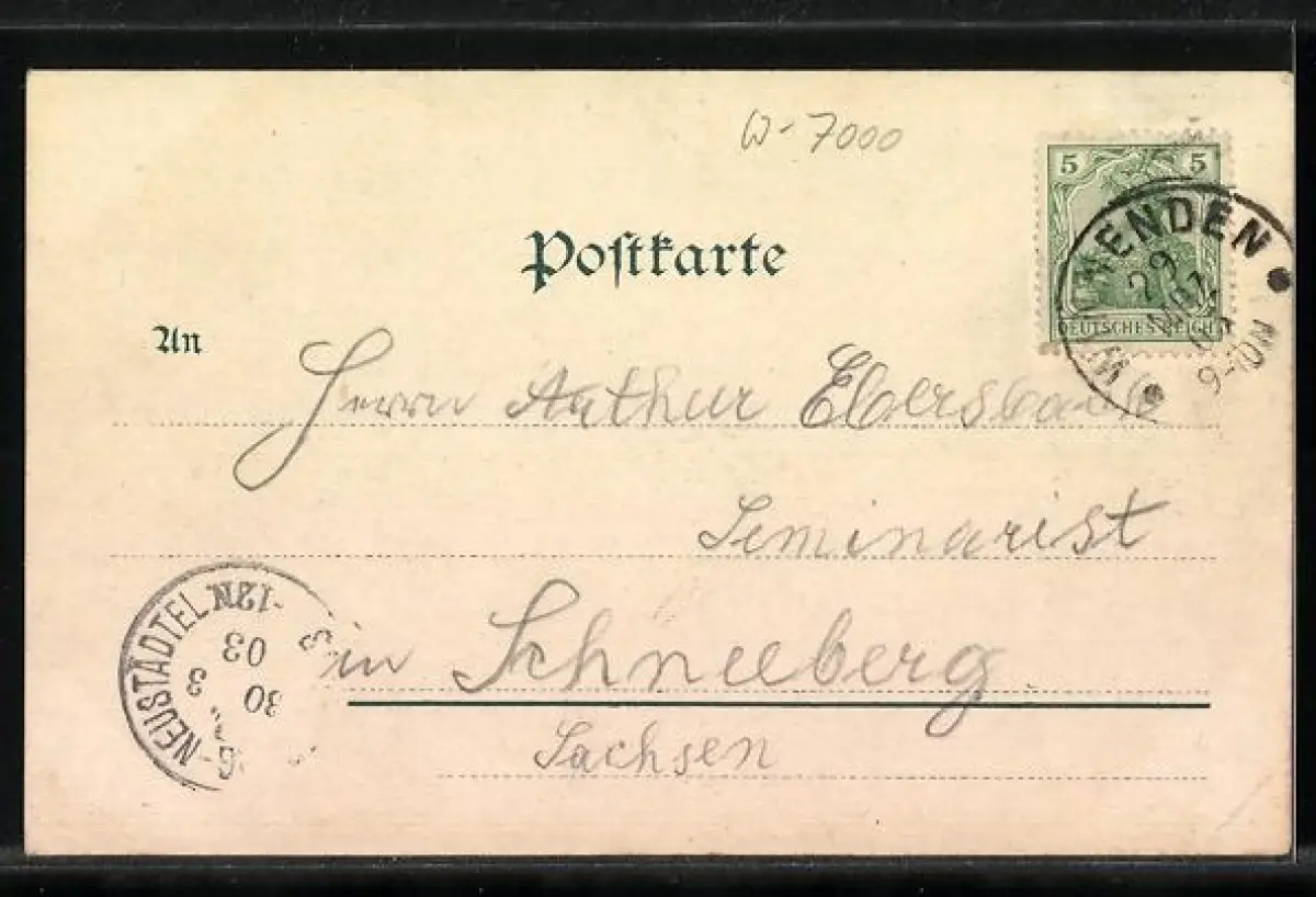 alte Ansichtskarte, gelaufen 1903, Eckknick li. unten, guter Zustand