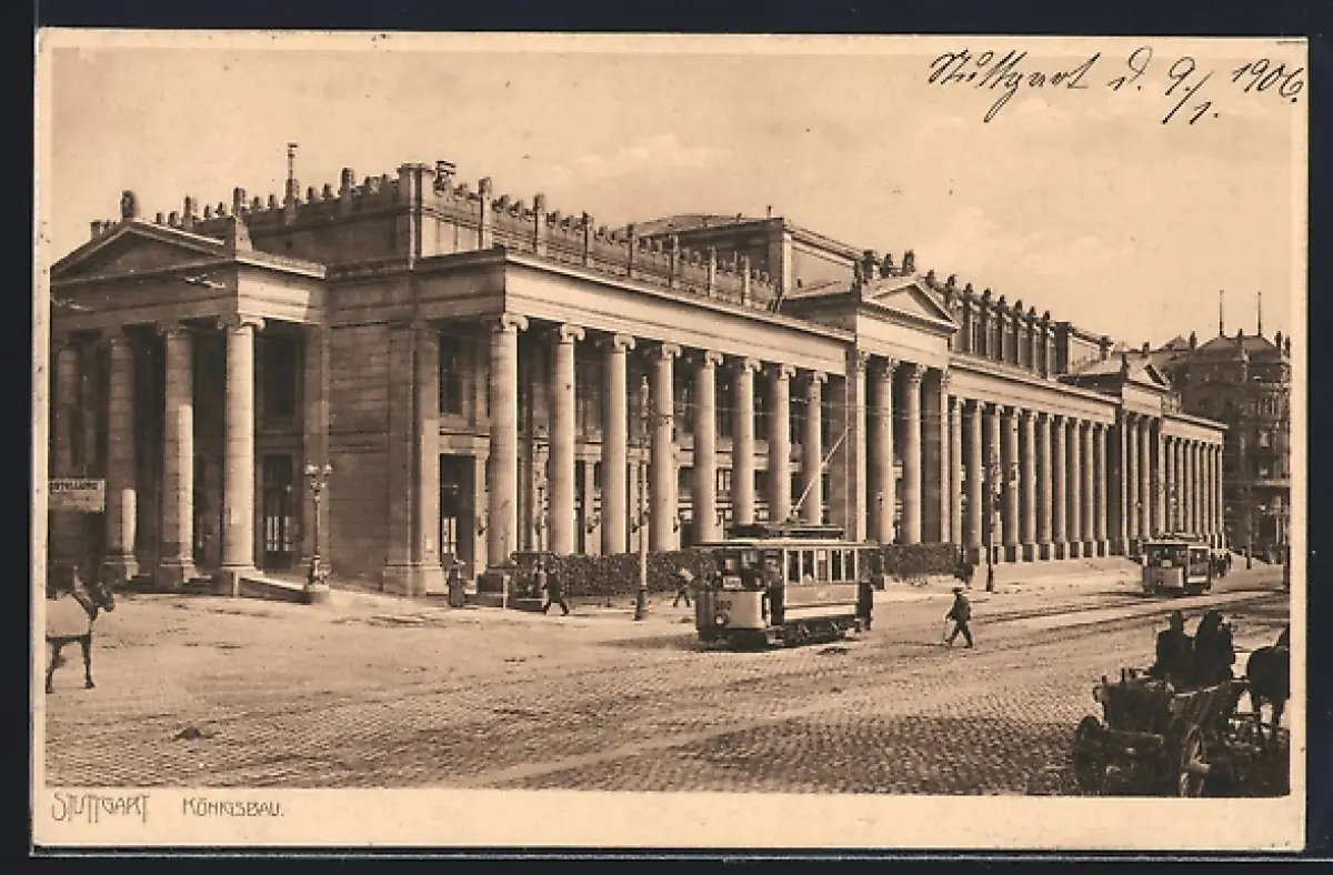 AK Stuttgart, Königsbau mit Strassenbahnen