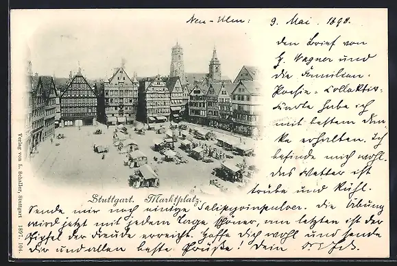 AK Stuttgart, Marktplatz an einem Markttag