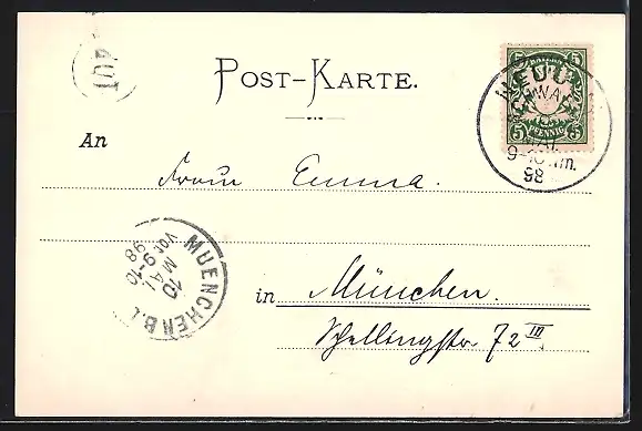 alte Ansichtskarte, gelaufen 1898, guter Zustand