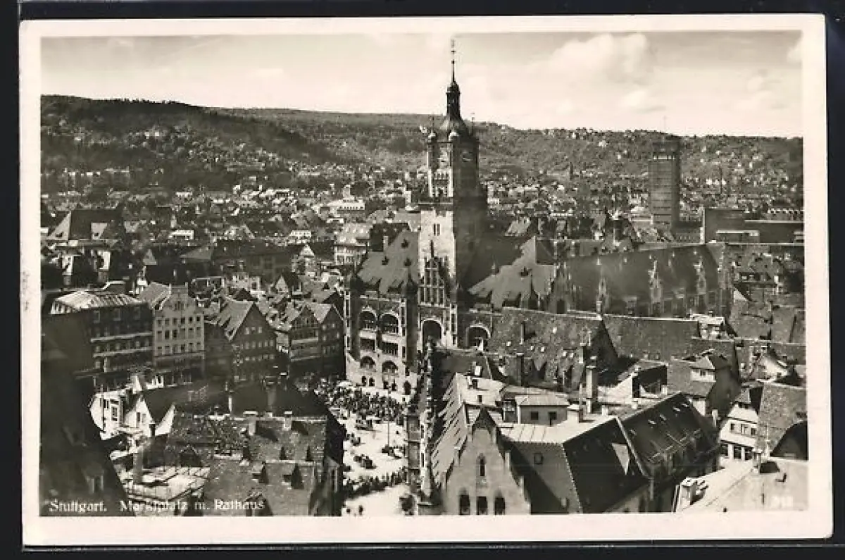 AK Stuttgart, Marktplatz mit Rathaus
