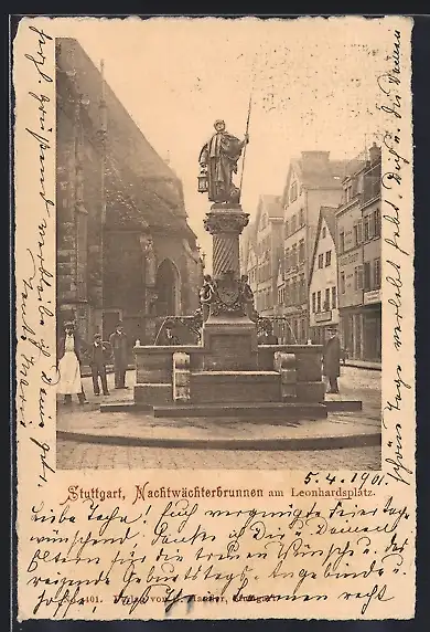 AK Stuttgart, Nachtwächterbrunnen am Leonhardsplatz