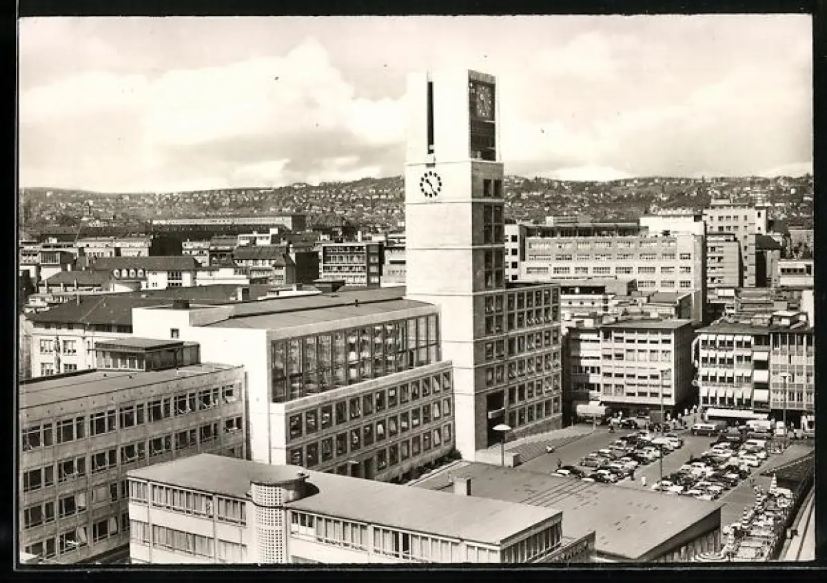 AK Stuttgart, Neues Rathaus aus erhöhter Perspektive