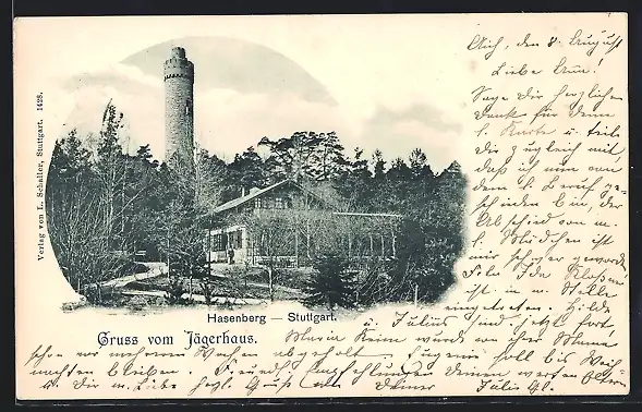 AK Stuttgart, Partie am Gasthaus Jägerhaus auf dem Hasenberg