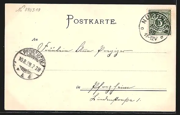 alte Ansichtskarte, gelaufen 1899, guter Zustand
