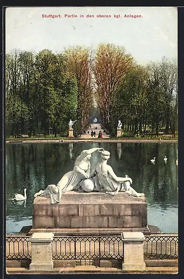 AK Stuttgart, Partie in den oberen kgl. Anlagen