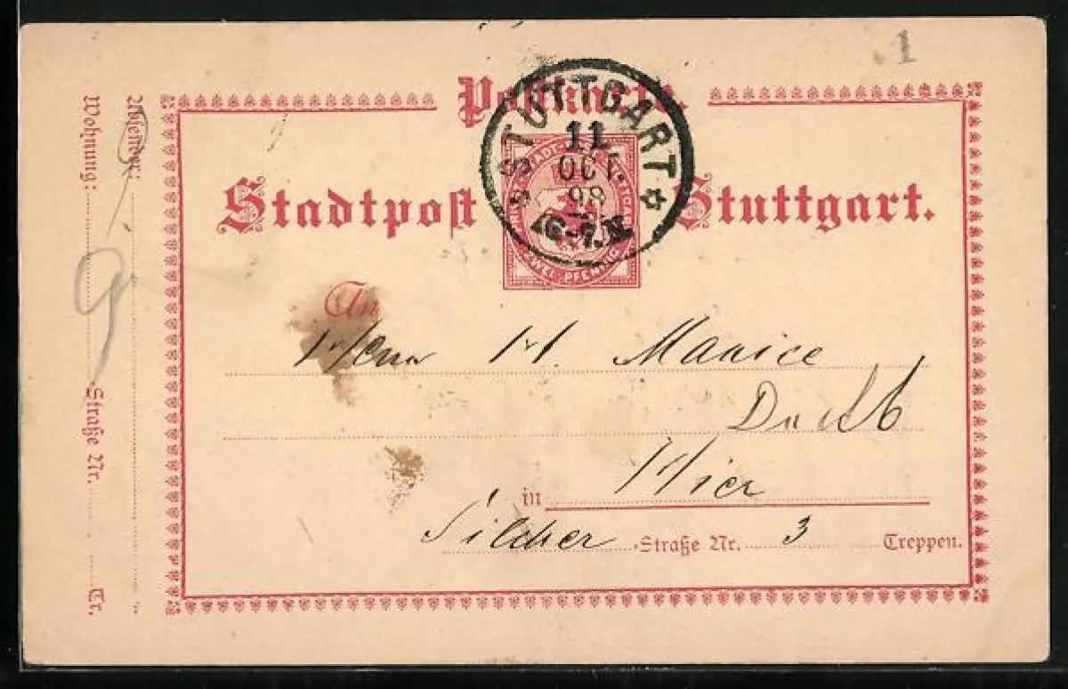 AK Stuttgart, Private Stadtpost, Ganzsache