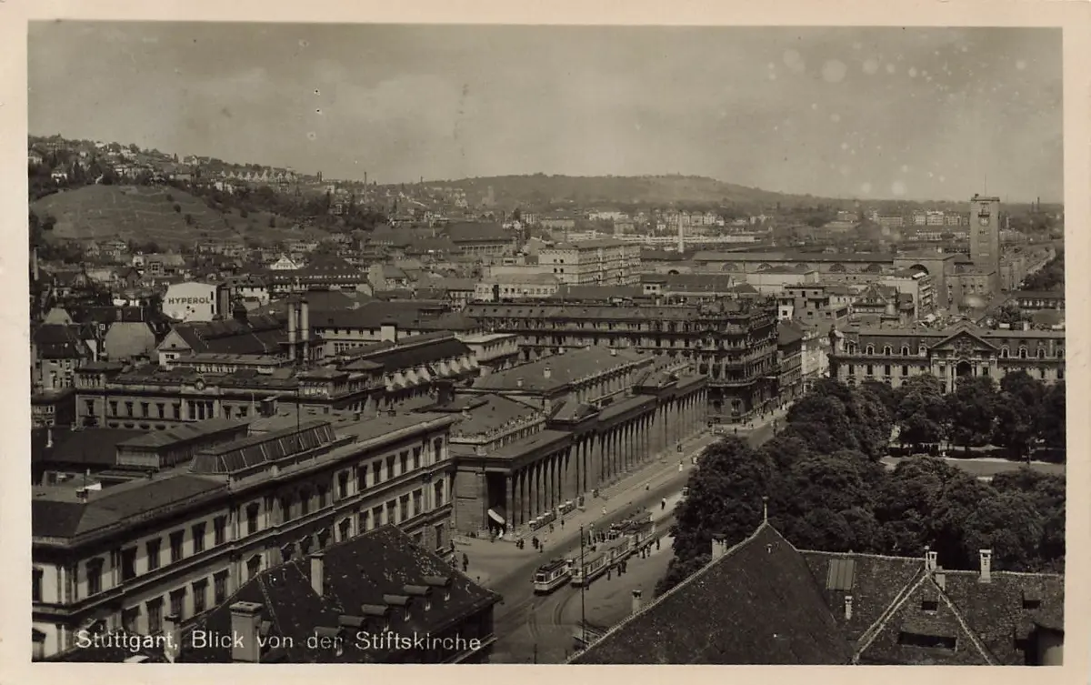 AK Stuttgart Schlossplatz Straßenbahn Baden-Württemberg 1934 gelaufen Postkarte