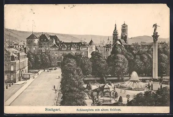 AK Stuttgart, Schlossplatz mit altem Schloss