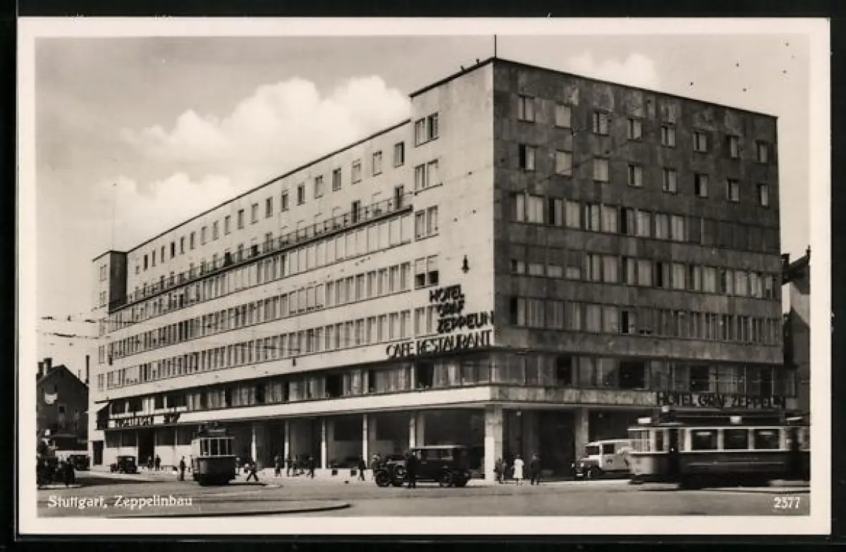 AK Stuttgart, Strassenbahnen, Zeppelinbau, Hotel Graf Zeppelin