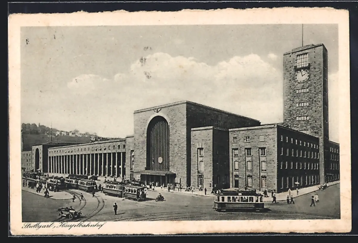 AK Stuttgart, Strassenpartie am Hauptbahnhof, Strassenbahn