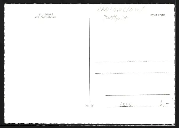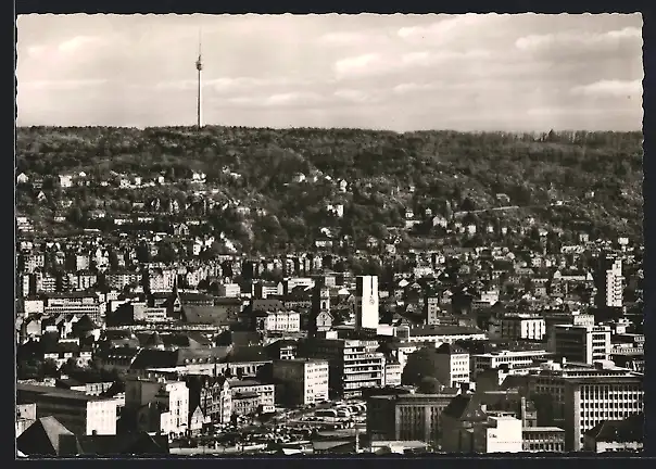 AK Stuttgart, Totalansicht mit Fernsehturm aus der Vogelschau
