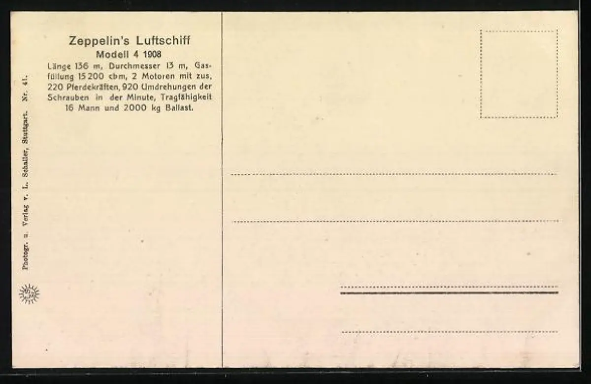 AK Stuttgart, Zeppelins Luftschiff vor der Katastrophe, Landung am 05.08.1908