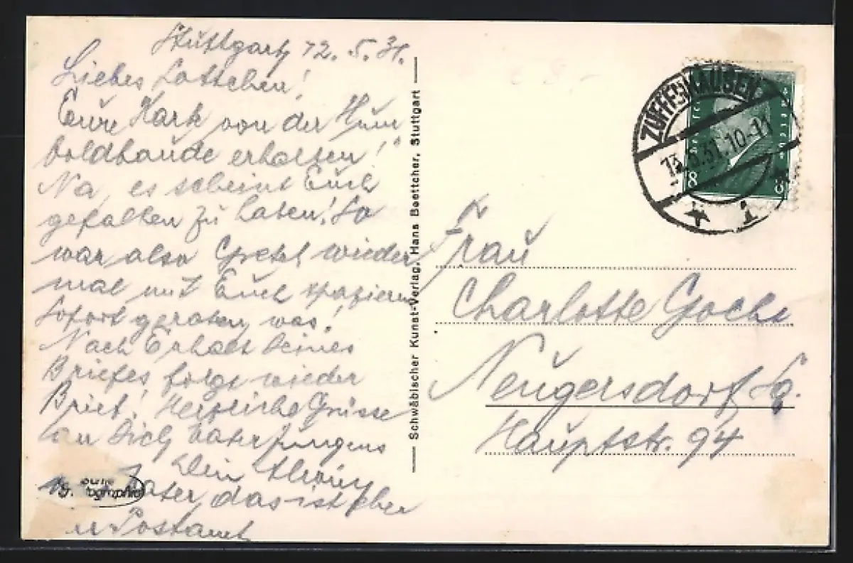 alte Ansichtskarte, gelaufen 1931, rückseitig Klebe- und Papierreste, guter Zustand