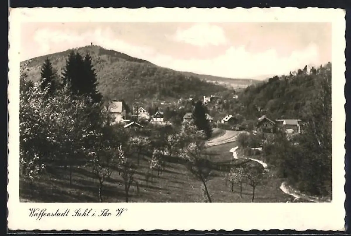 AK Suhl i. Thr. W., Ortsansicht aus der Vogelschau