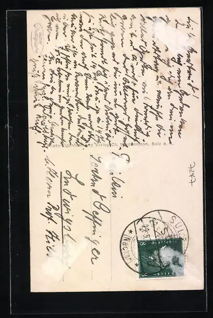 alte Ansichtskarte, gelaufen, rückseitig Klebe- und Papierreste, guter Zustand