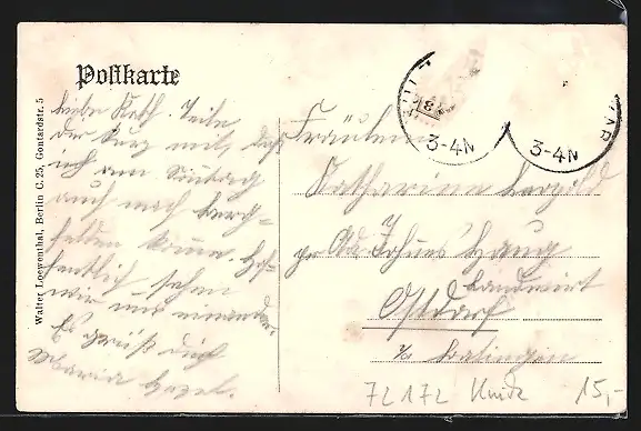 alte Ansichtskarte, gelaufen, Briefmarke entfernt, rückseitig Oberflächenschaden, Eckknick li. oben, guter Zustand