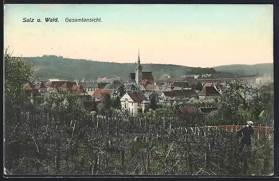 AK Sulz unterm Wald, Mann mit Hut am Ortsrand