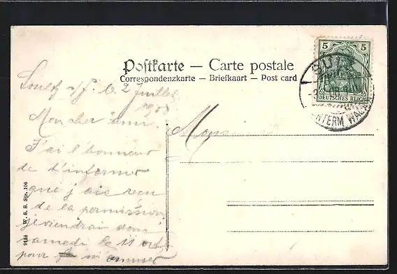 alte Ansichtskarte, gelaufen 1908, Eckknicke li., guter Zustand