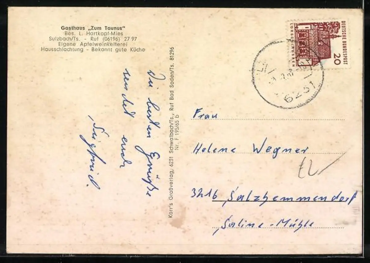 AK Sulzbach /Taunus, Gasthaus Zum Taunus, Inh. Hartkopf-Mies, Gebäude, Innenansichten