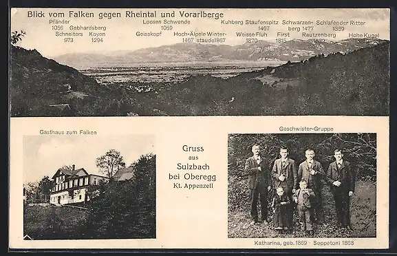 AK Sulzbach bei Oberegg, Gasthaus zum Falken, Geschwister-Gruppe, Blick vom Falken