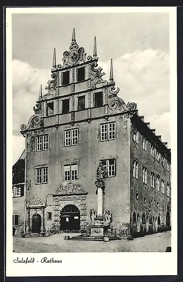 AK Sulzfeld / Main, Rathaus mit Denkmal