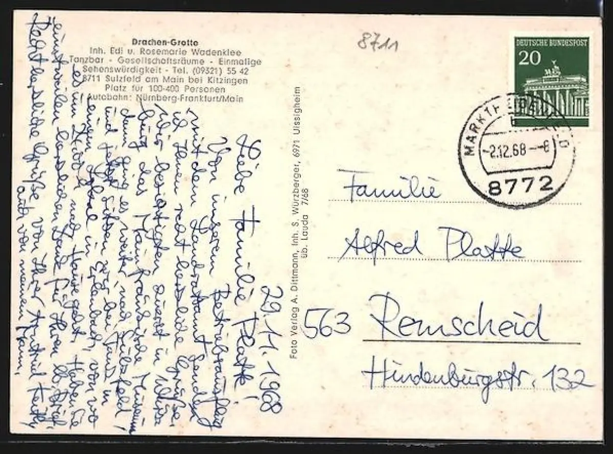 AK Sulzfeld am Main, Gasthaus Drachen-Grotte, Inh. Edi u. Rosemarie Wadenklee