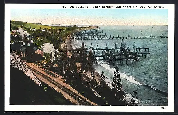 AK Summerland, Coast Highway, Oil Wells in the Sea, Ölbohrtürme