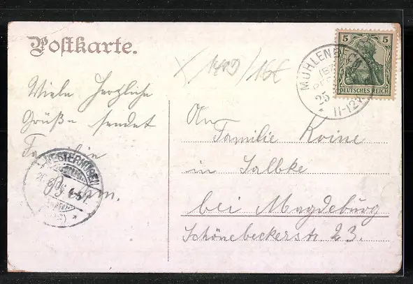 alte Ansichtskarte, gelaufen 1906, Eckknick re. oben, guter Zustand