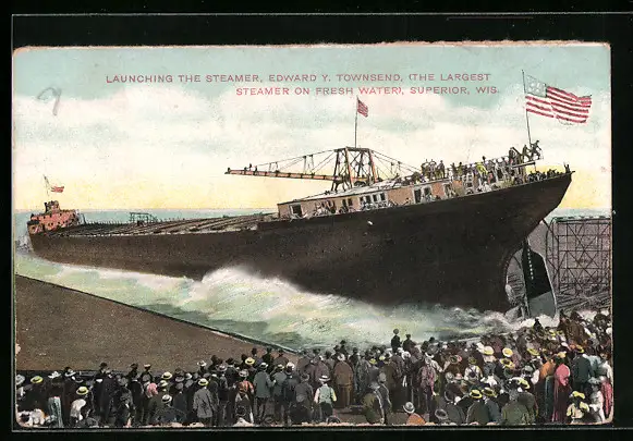 AK Superior, Wis., Launching the Steamer Edward Y. Townsend, The largest steamer on fresh water
