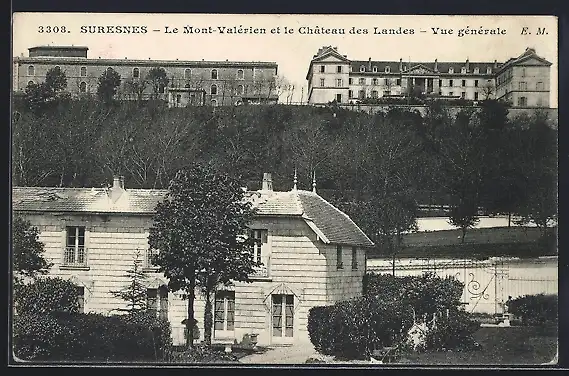 AK Suresnes, Le Mont-Valérien et le Château des Landes, Vue générale