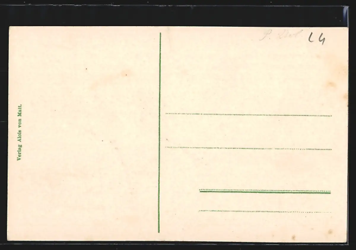 Personenbezogene Daten auf der Rückseite der Karte wurden durch blauen Textmarker unkenntlich gemacht. Die blauen Stellen sind auf die Vorderseite durchgeweicht und wirken sich negativ auf das Postkartenfoto aus