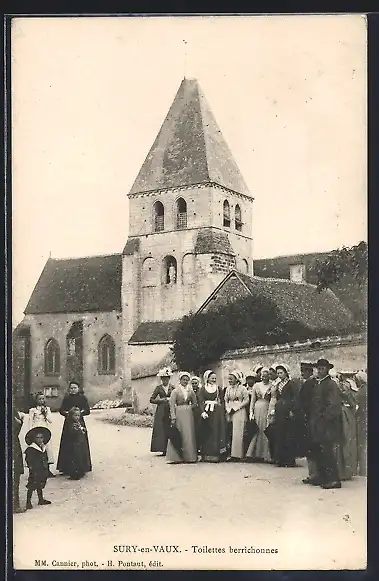 AK Sury-en-Vaux, Toilettes berrichonnes devant l`église