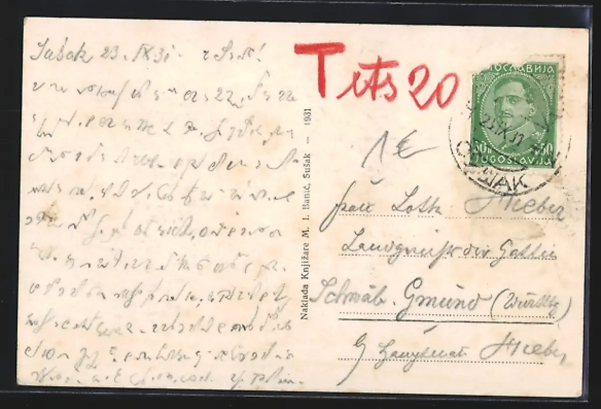 gelaufen 1931, Eckknicke re. unten, guter Zustand