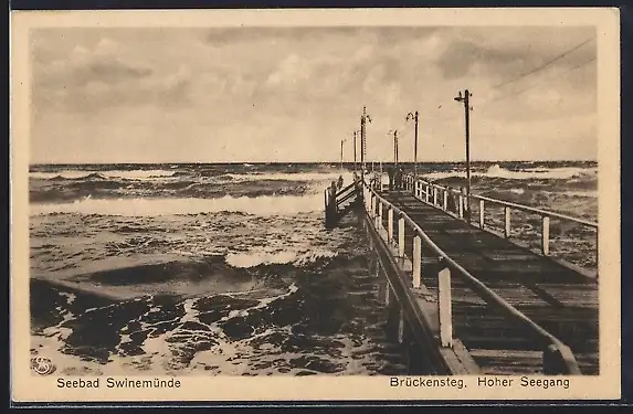 AK Swinemünde, Brückensteg bei hohem Seegang
