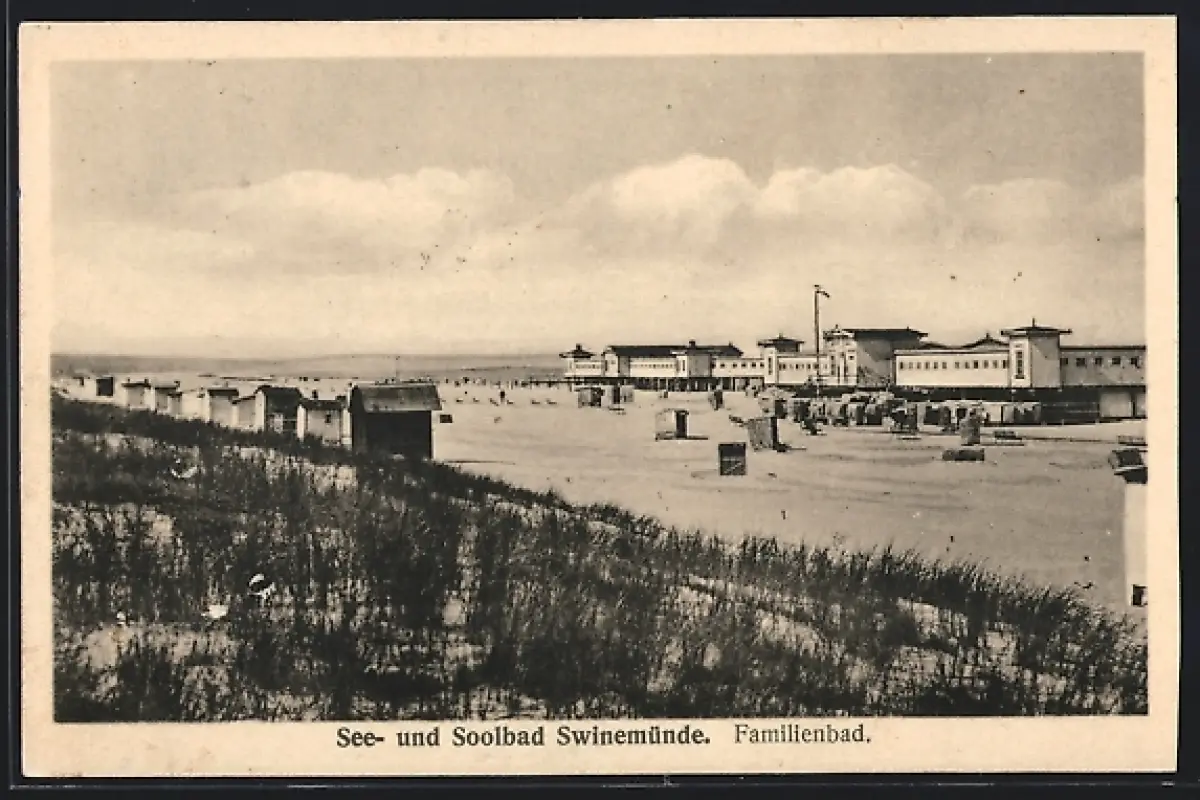 AK Swinemünde, Familienbad, Strandkörbe und Dünen