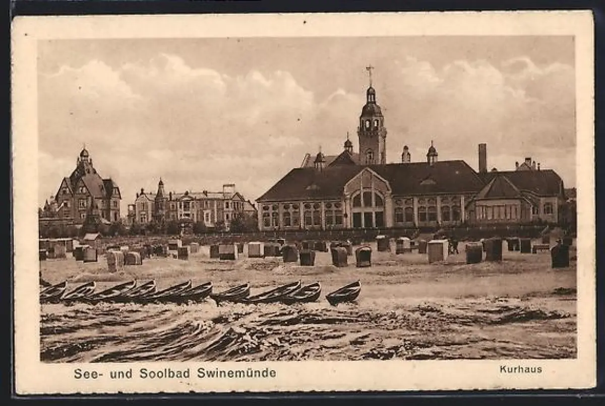AK Swinemünde, Kurhaus, Ruderboote am Strand
