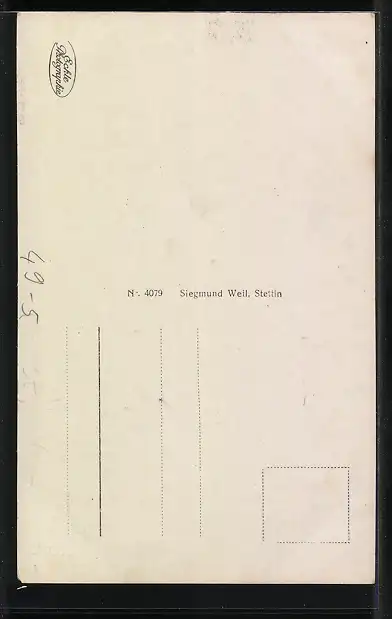 Personenbezogene Daten auf der Rückseite der Karte wurden durch blauen Textmarker unkenntlich gemacht. Die blauen Stellen sind auf die Vorderseite durchgeweicht und wirken sich negativ auf das Postkartenfoto aus