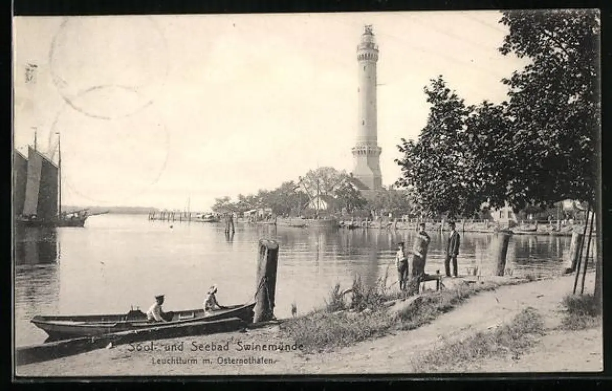 AK Swinemünde, Leuchtturm mit Osternothafen