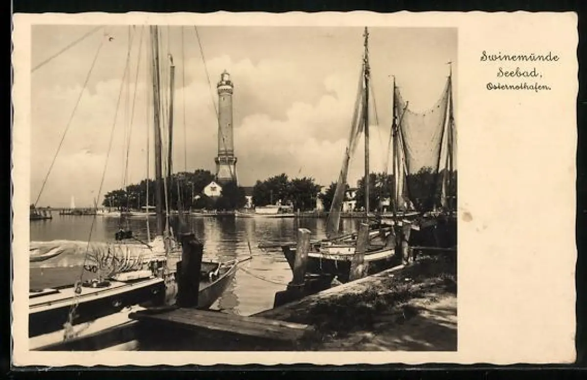 AK Swinemünde-Osternothafen, Blick auf den Leuchtturm